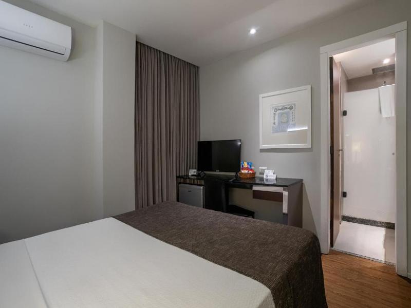 A comodidade da acomodação Quarto Duplo Standard do Orla Copacabana Hotel assegura que você desfrute de uma estadia relaxante e confortável no Orla Copacabana Hotel. Este espaço é ideal para casais ou amigos, oferecendo uma cama espaçosa e um ambiente acolhedor. Equipado com ar-condicionado, TV a cabo e Wi-Fi gratuito, o quarto proporciona tudo que você precisa para se sentir em casa.